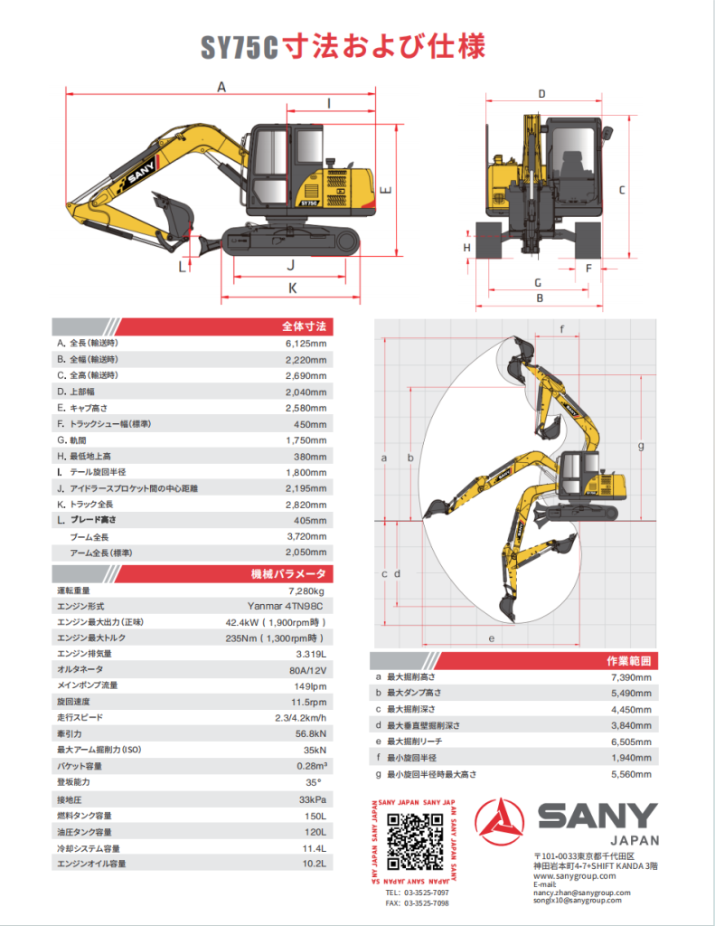 SANY SY75Cは、同クラス中最もパワフルで耐久性も抜群。建設作業、道路作業、積み込み作業など、あらゆる作業環境下で最高のパフォーマンスを発揮します。オペレーター・ファーストの快適性と強力な駆動力は日々の作業に高い生産性をお約束します。