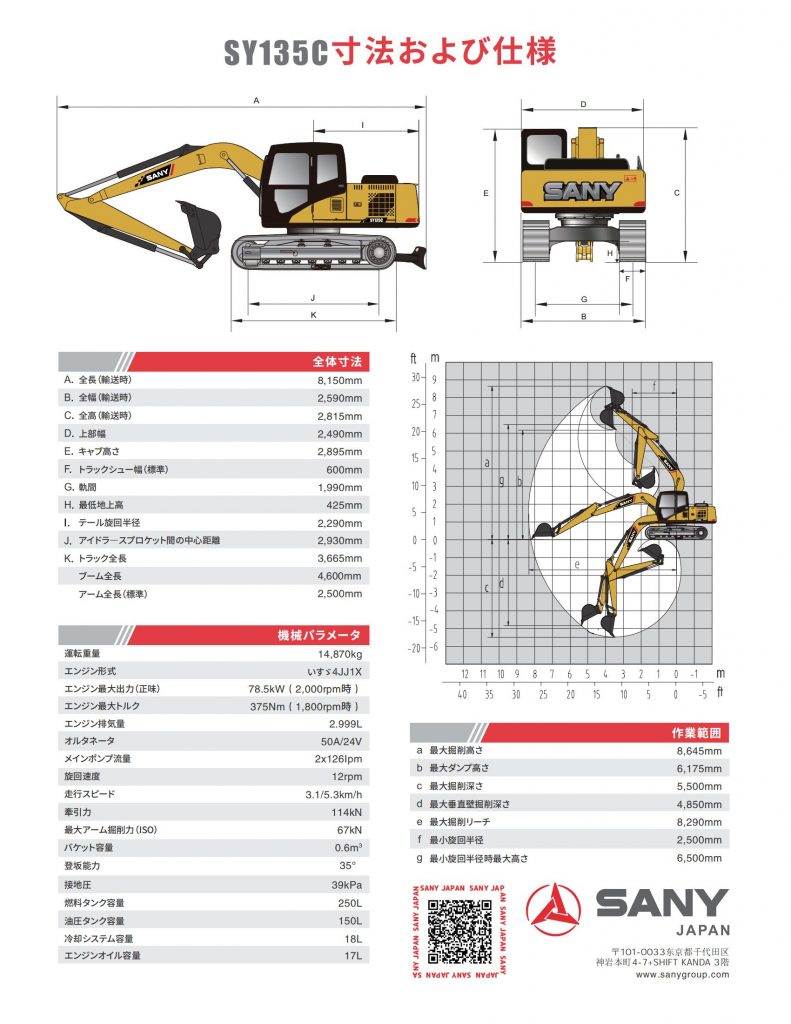 小型ショベル SY135C - 三一日本株式会社(本社)