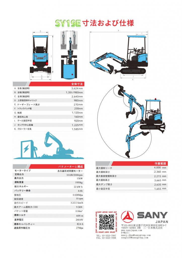 電動ショベル SY19E - 三一日本株式会社(本社)